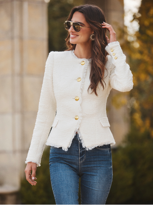 L'AGENCE Nerina Collarless Structured Blazer in Ivory