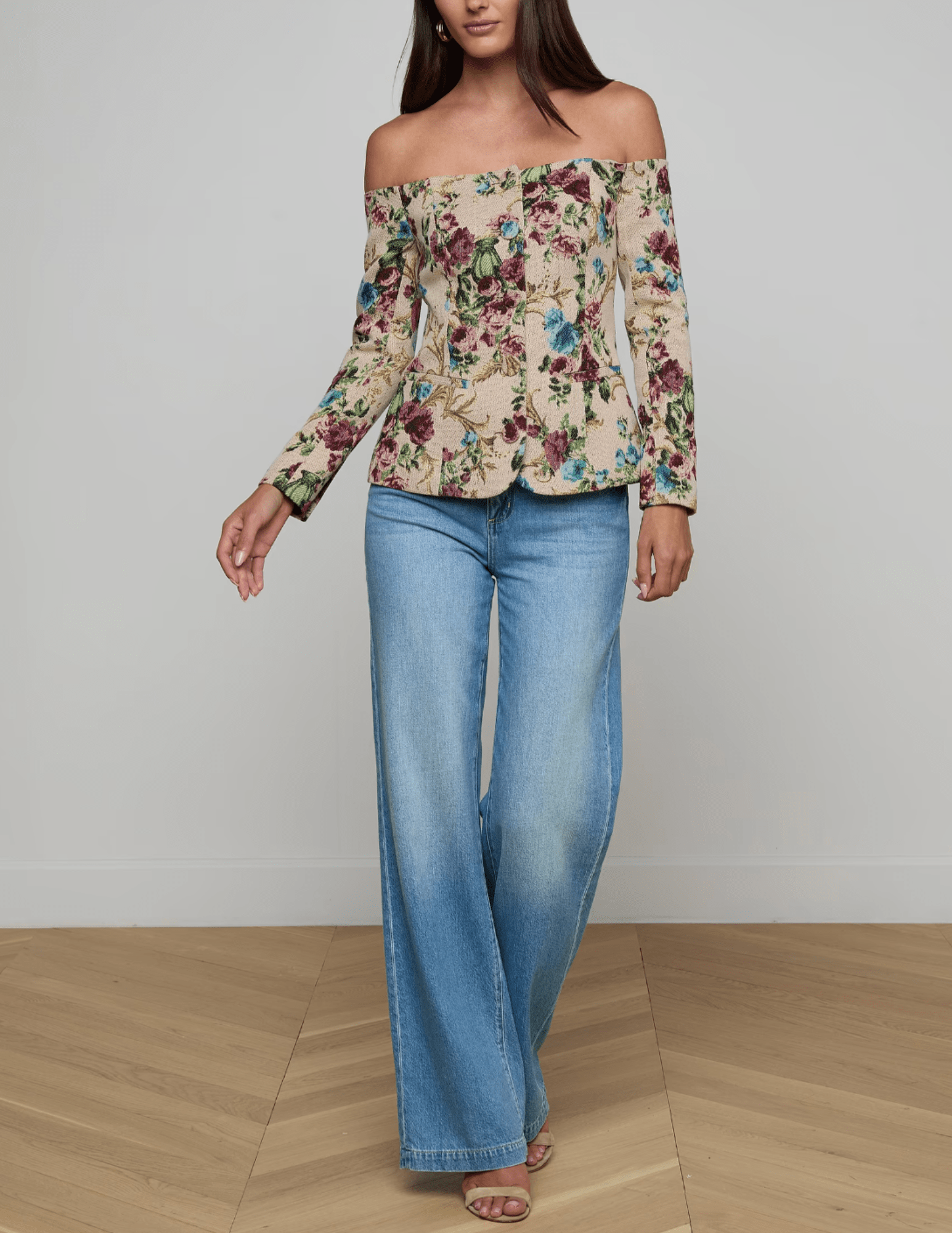 Bold tailoring meets feminine artistry in the L’AGENCE Alice Off-Shoulder Blazer, a standout statement piece crafted from luxurious cotton-blend floral tapestry. Designed to turn heads, this modern blazer features a striking off-the-shoulder neckline that redefines classic tailoring with a confident, contemporary edge.