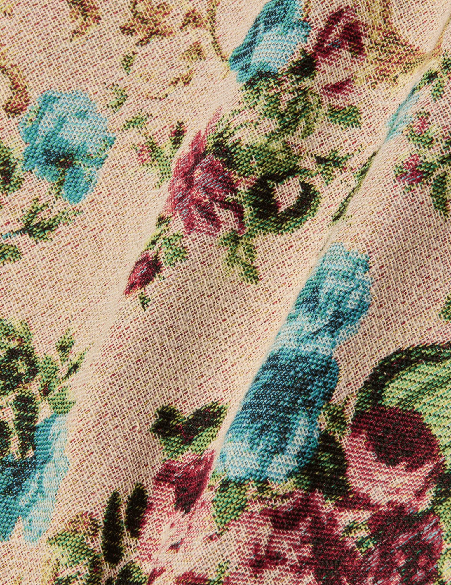 Cotton-blend floral tapestry with rich texture and depth