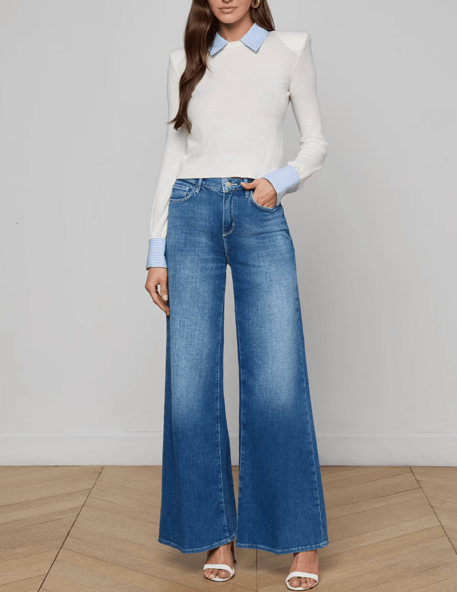 Refined, polished, and endlessly versatile, the L’AGENCE April Poplin Collar Sweater in White & Blue Stripe is the perfect blend of classic shirting details and modern knitwear. This slim-fit sweater is crafted from a featherweight knit infused with silk for exceptional softness, drape, and comfort.