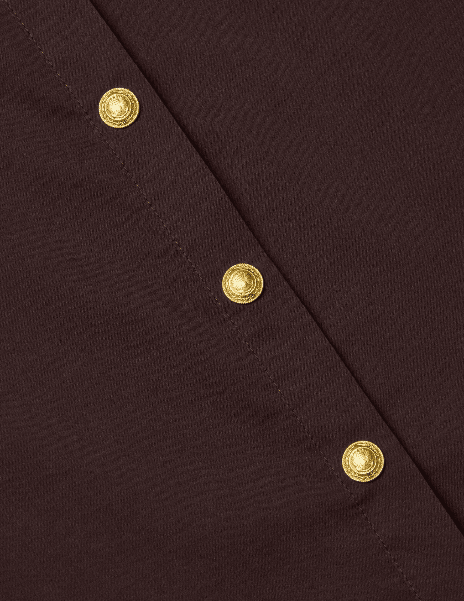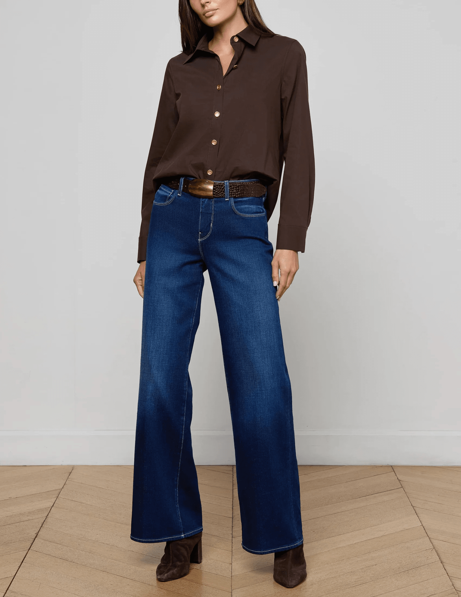 The L’AGENCE Ellery Long Sleeve Button Blouse in Coffee Bean is a modern essential with timeless sophistication. Designed in stretch cotton poplin for a crisp, tailored look, this blouse features gold dome embossed buttons that elevate the classic shirting silhouette with subtle luxury.