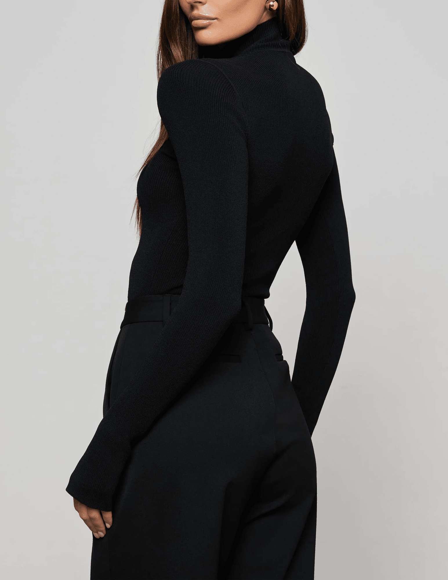 The Jennis Bodysuit is a sophisticated wardrobe foundation that transitions effortlessly from desk to dinner.