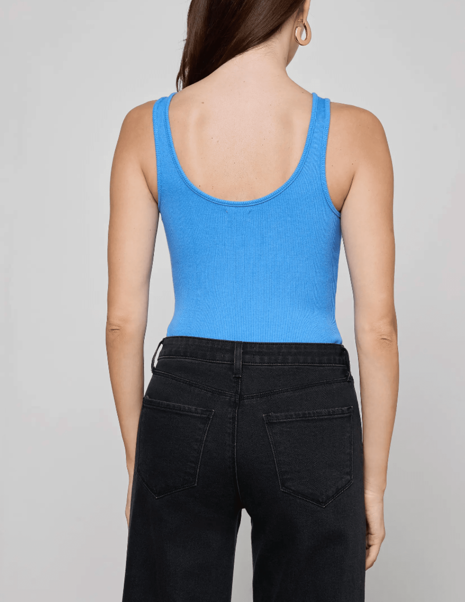 The Nica Scoop Neck Bodysuit in Regatta Blue from L’AGENCE delivers a clean, timeless look with its soft ribbed knit and flattering silhouette. Featuring a scoop neckline and back, this sleeveless bodysuit offers a smooth, body-contouring fit and a secure two-snap gusset closure for all-day comfort. The versatile ivory hue makes it perfect for layering or wearing solo for a polished style.