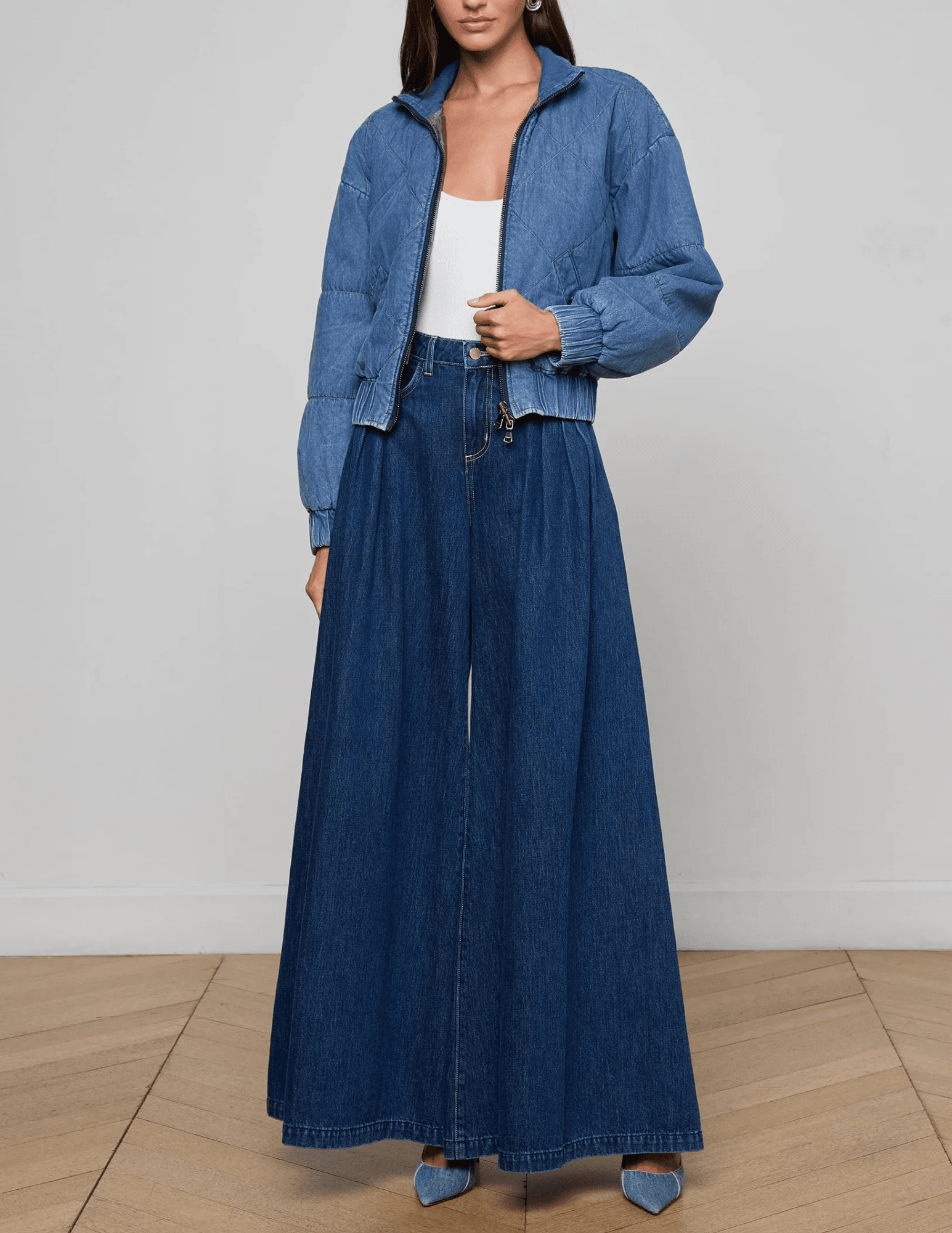 Throw over a silk slip dress and boots for an urban-chic twist. Pair with wide-leg jeans and sneakers for a modern denim-on-denim look. Layer with a turtleneck and tailored trousers for a sleek weekday edit.