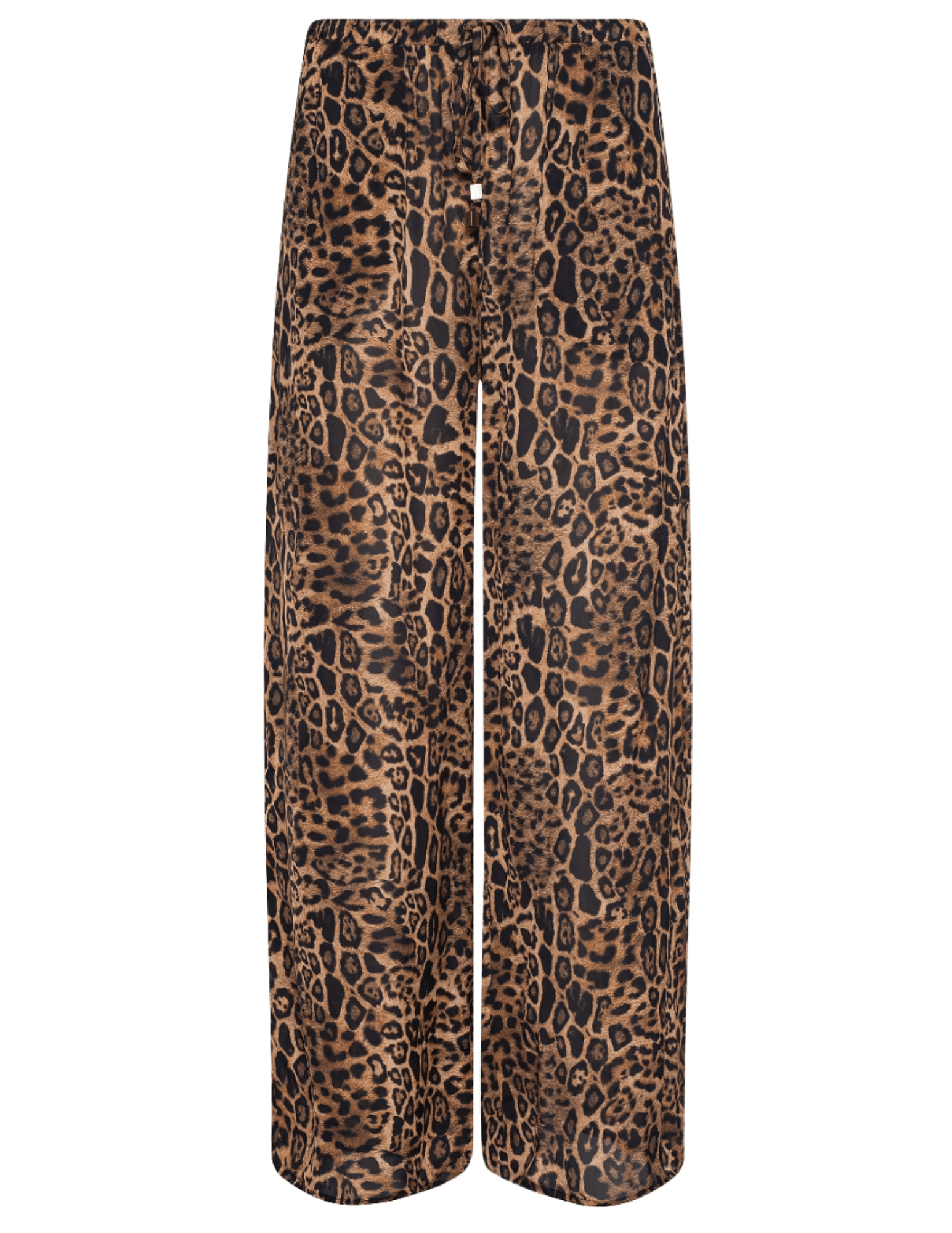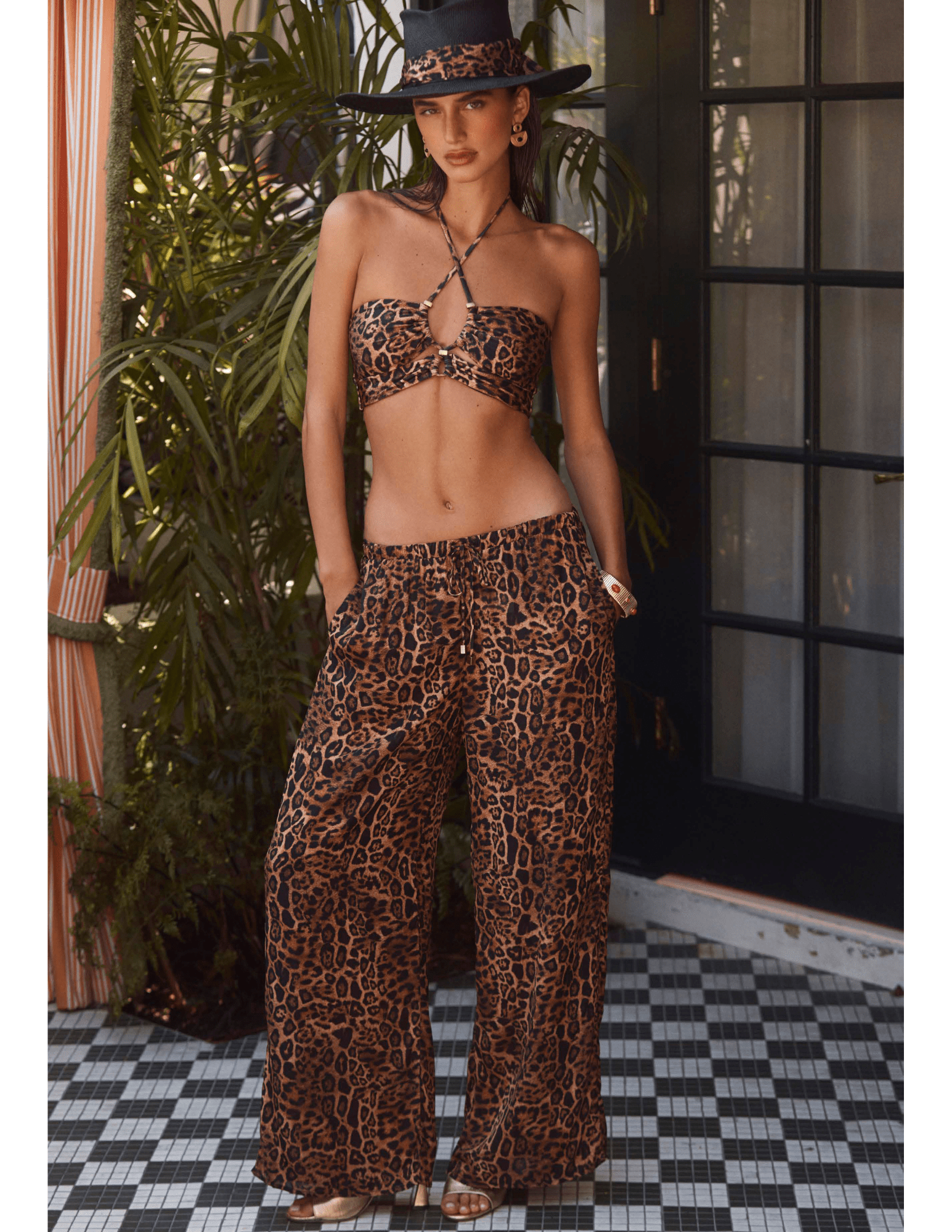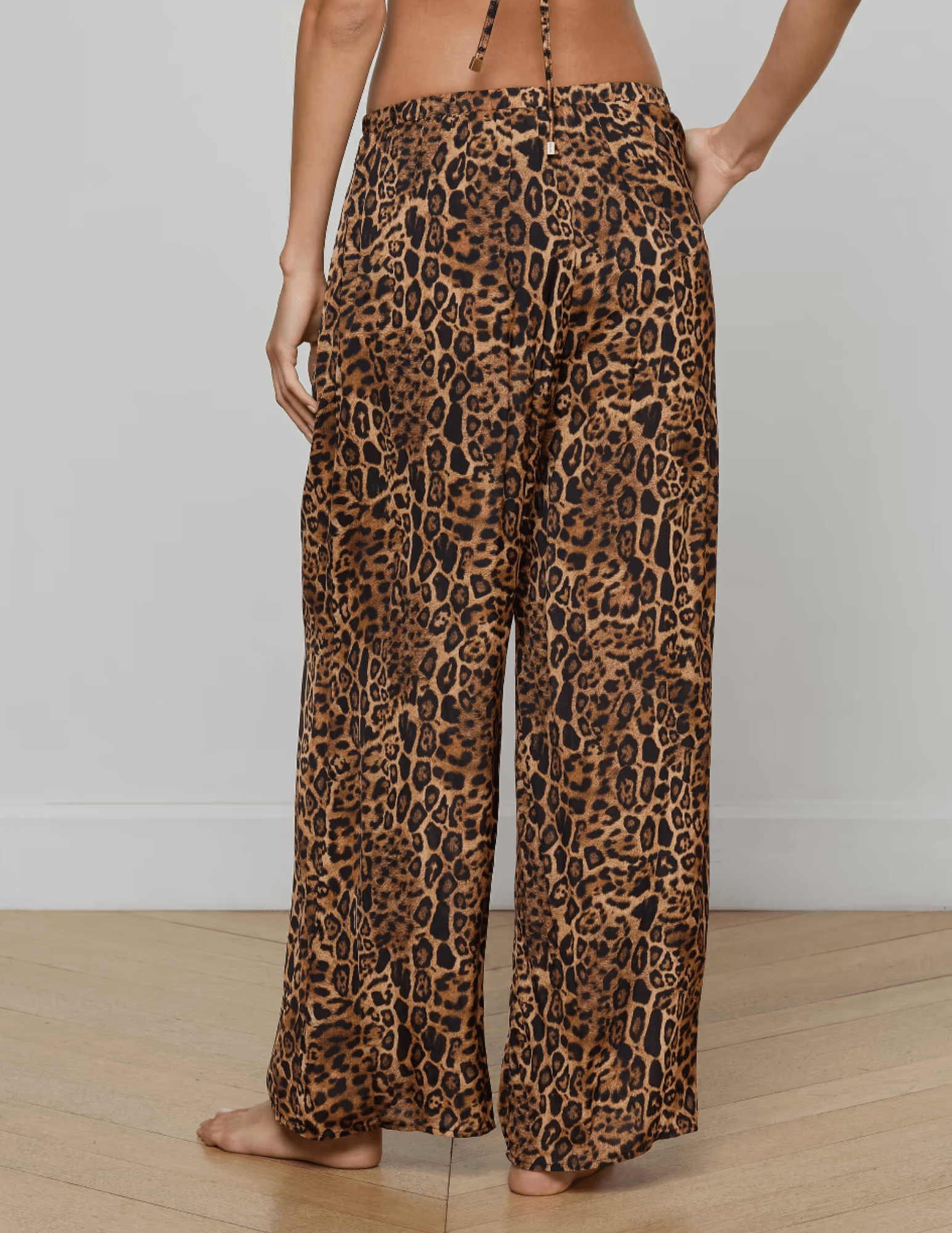 The bold multi-patch leopard pattern creates a striking visual appeal, making this dress a standout layering piece over swimwear or styled for vacation dinners. Thoughtfully finished with gold-chain tie belt cinches, the Sara dress flatters your natural waist while adding a luxe touch. A plunging V-neckline and side slits introduce sensuality and breathability, enhancing both comfort and style.