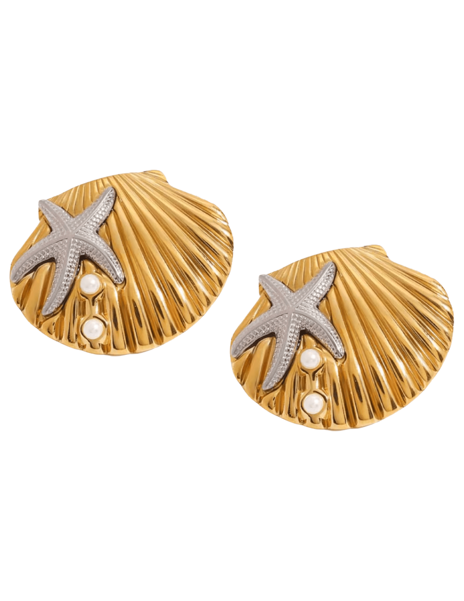 Pearl-inspired embellishments add a touch of softness and shine, giving the Sirena Earrings a refined yet playful look. Their standard post backing ensures comfortable wear, making them ideal for both casual daytime outfits and dressy warm-weather occasions.