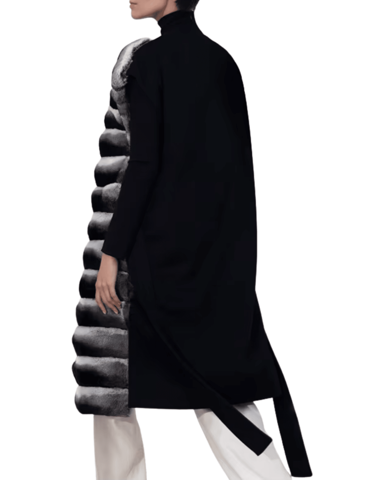 This fur duster vest pairs effortlessly with sleek tailoring or evening looks, adding an element of elevated texture and warmth.